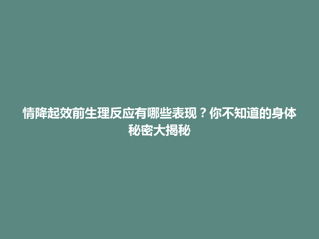来看,情降起效前的生理反应不仅是身体对情感刺激的自然反应,更是情感交流中的重要组成部分。了解这些反应,可以帮助我们更好地理解自己的情感状态,从而有效促进感情的发展。 在下一次面对心仪的人时,不妨留心自己身体发出的信号,或许你会 更加清楚自己的内心感受。探索这些身体秘密,或许会为你的情感生活带来意想不到的启发与改变。